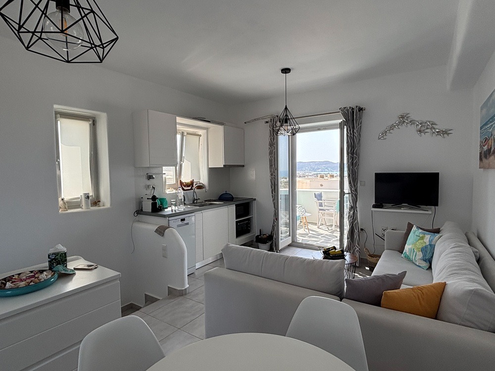 Πολύ φωτεινή και σε άριστη κατάσταση, αποτελείται στο κυρίως επίπεδο από ενιαίο χώρο σαλονιού και κουζίνας, που ανοίγει σε μπαλκόνι με εντυπωσιακή θέα στη θάλασσα.