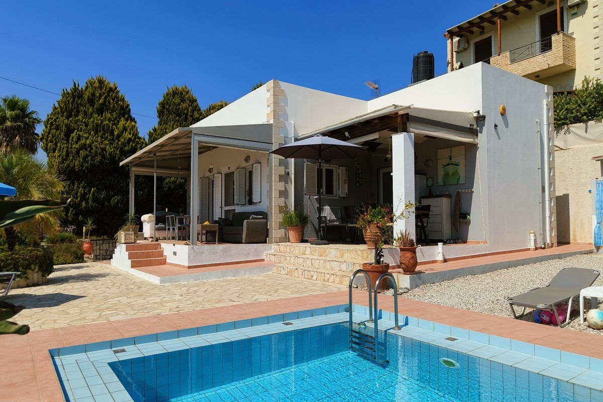 Μονοκατοικία προς πώληση με πισίνα και πανοραμική θέα θάλασσα στον Πλατανιά Χανίων