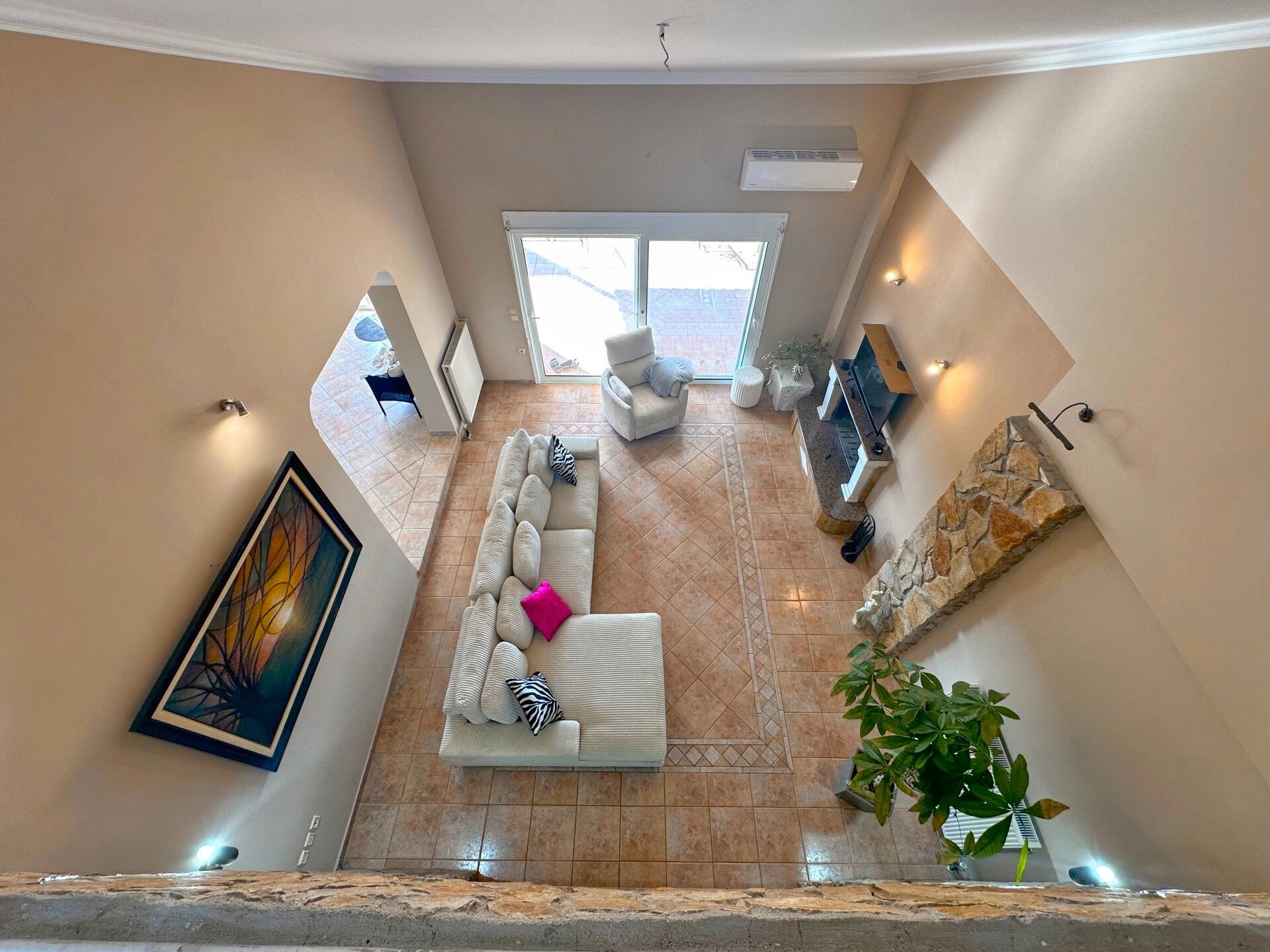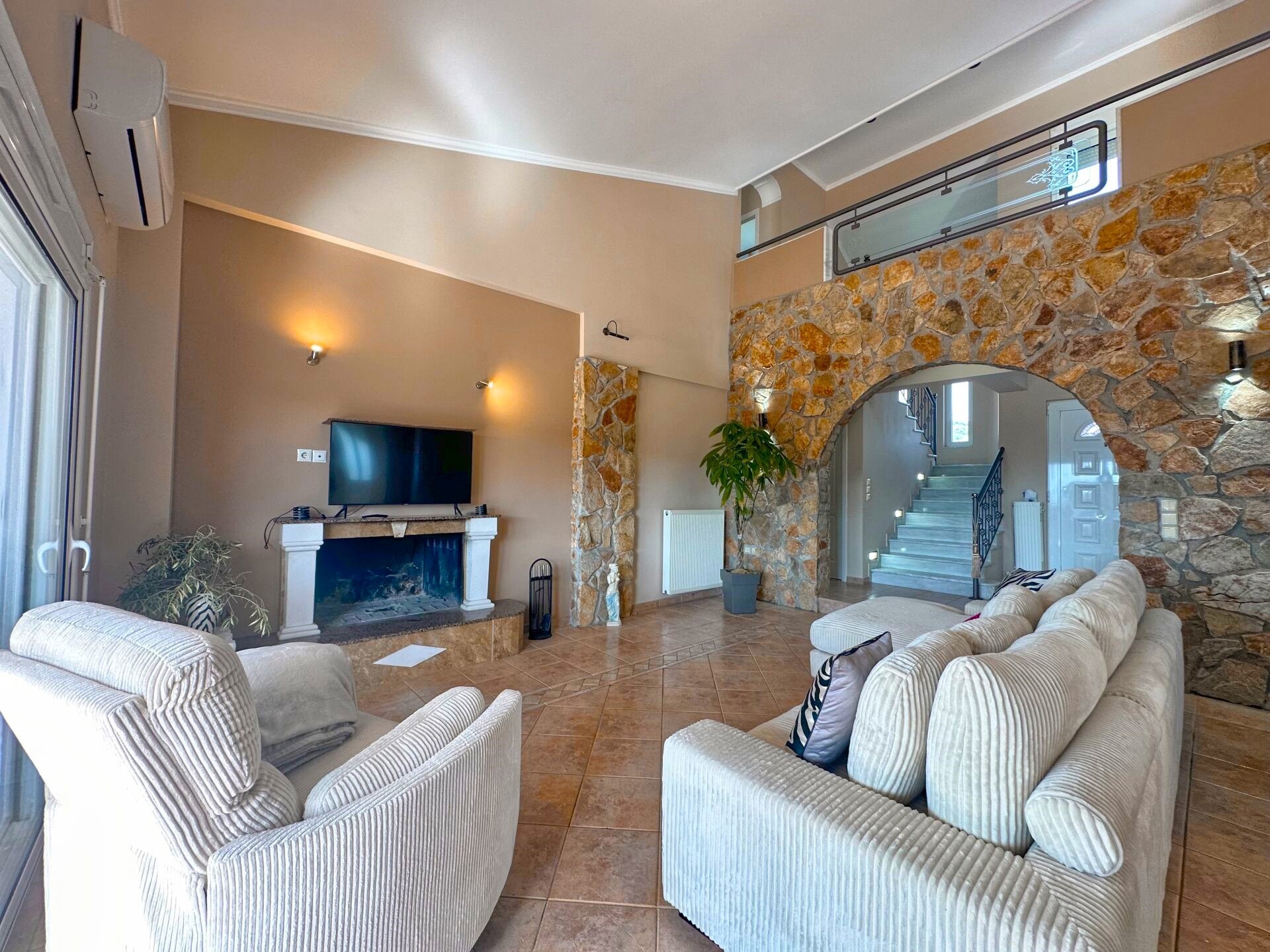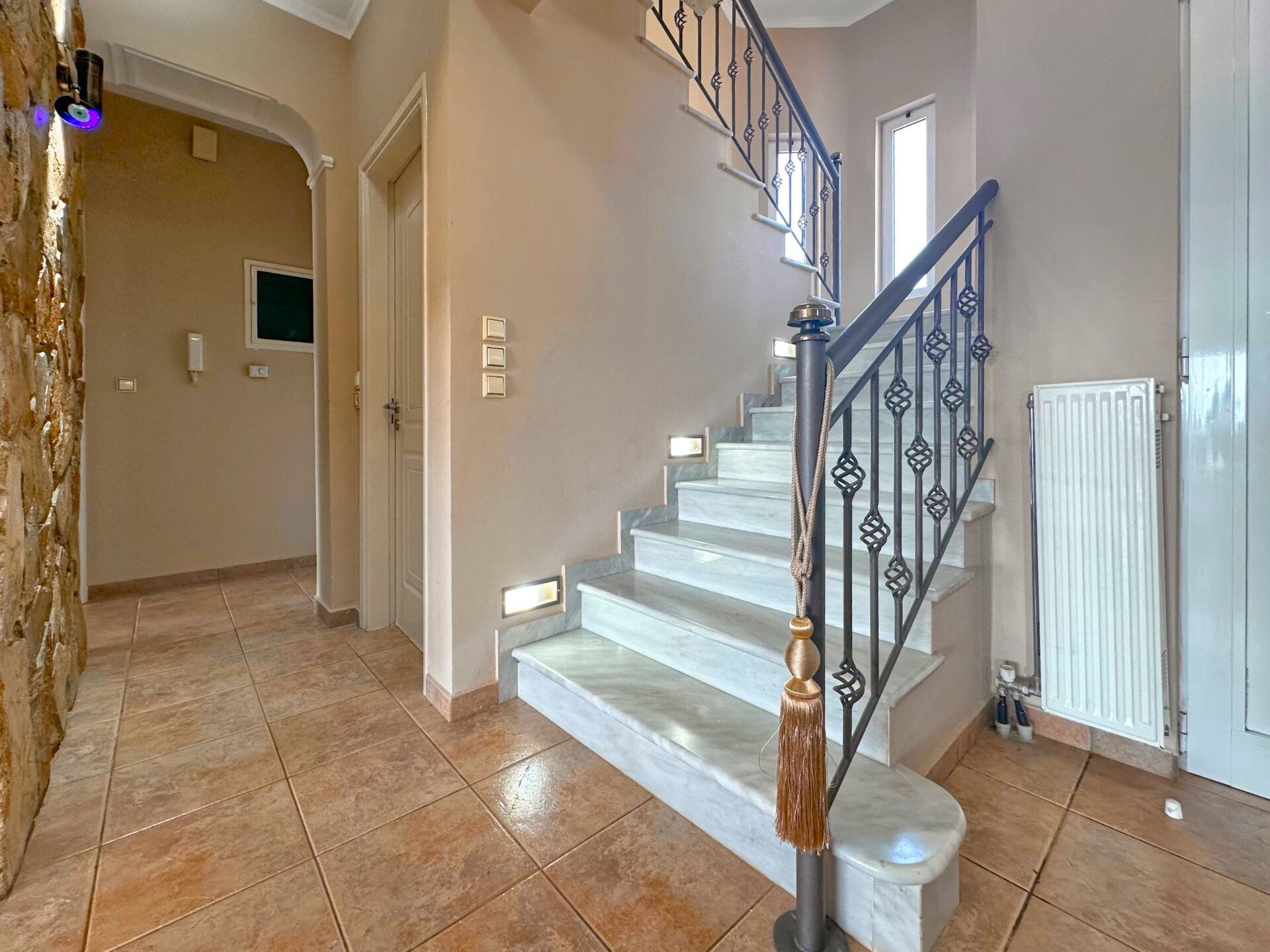 Αποτελείται από τέσσερα υπνοδωμάτια, δύο σαλόνια, εξοπλισμένη κουζίνα, δύο μπάνια και WC, ενώ διαθέτει και playroom καθώς και dressing room, προσφέροντας άνεση για μόνιμη κατοικία ή εξοχική χρήση υψηλών προδιαγραφών.